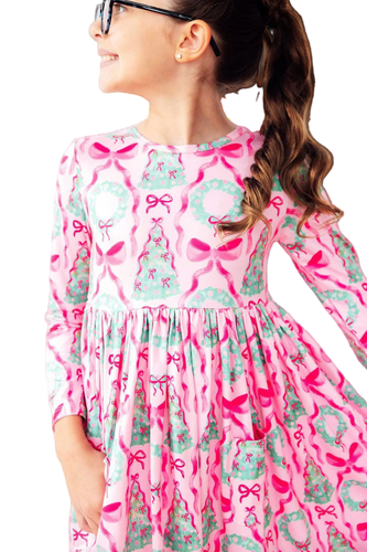 Jingle Bows Long Sleeve Pocket Twirl Dress