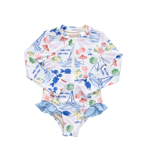 Girls Lottie Bow Suit - Wide Blue Stripe