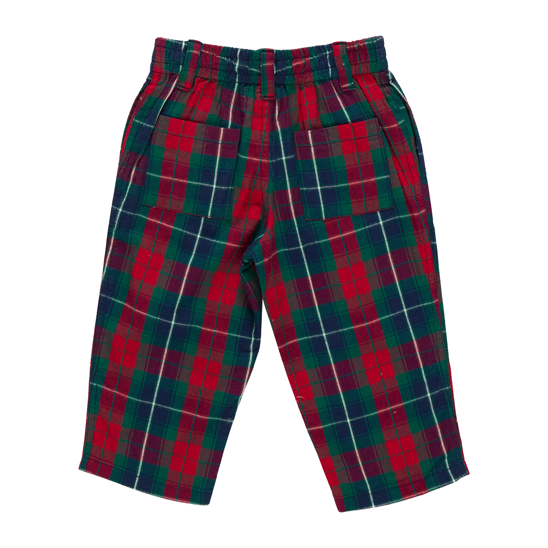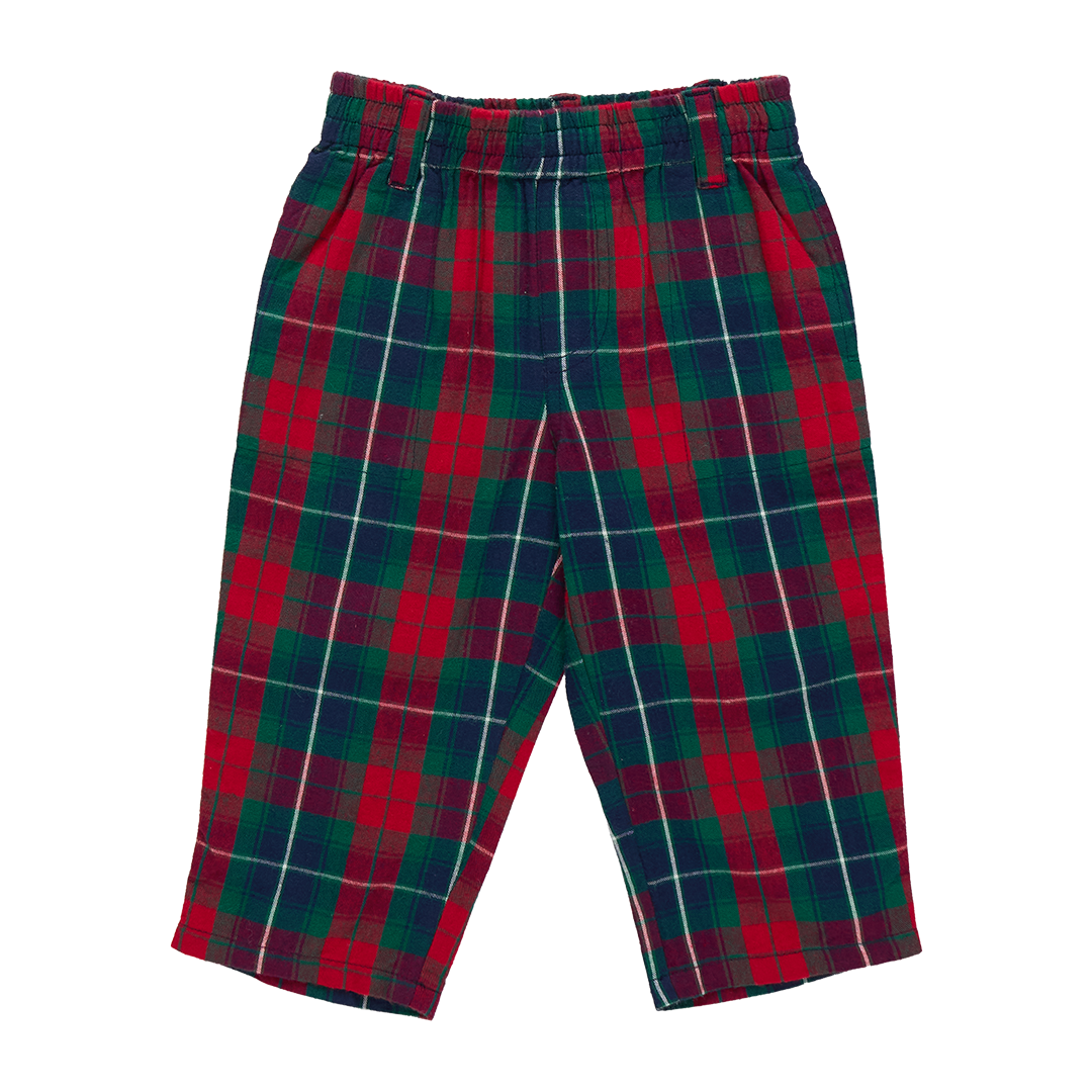 Check This Out! Our tried and true Red Tartan makes a brilliant holiday statement on our collection classic Boys Jack Pant. A traditional combination of red, green, gold, and navy weaves together to create the perfect plaid. These easy-to-wear, elastic-waist, pull-on pants feature a faux button closure, belt loops, and both side and back pockets, perfectly sized for pine cones, candy canes, and more.