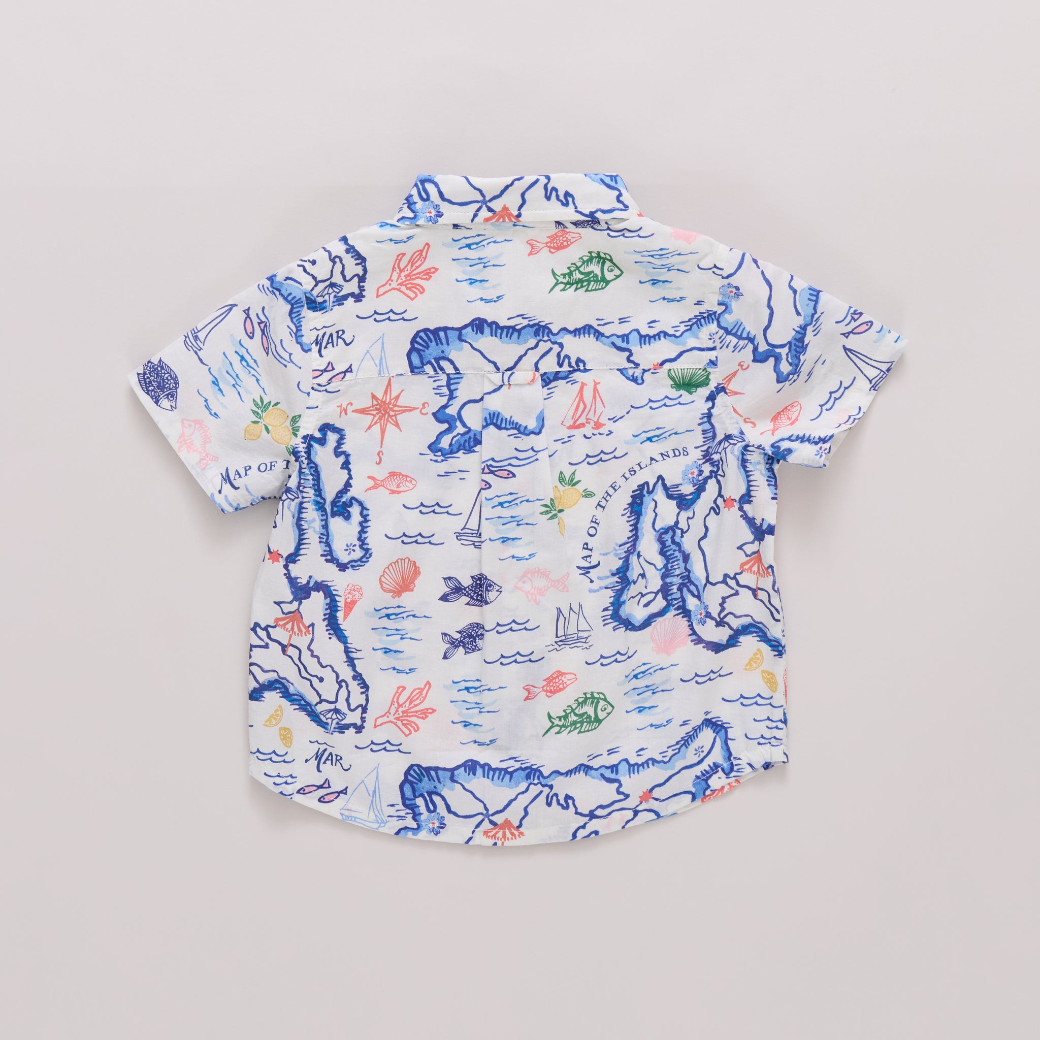 Little explorer! A collaboration with artist Ashley Begley, our Baby Boys Jack Shirt in the Island Map print brings artful adventure to every outing. With a front pocket, short sleeves, and wooden buttons, it’s a breezy essential for vacation days and family getaways alike. Match with Sister