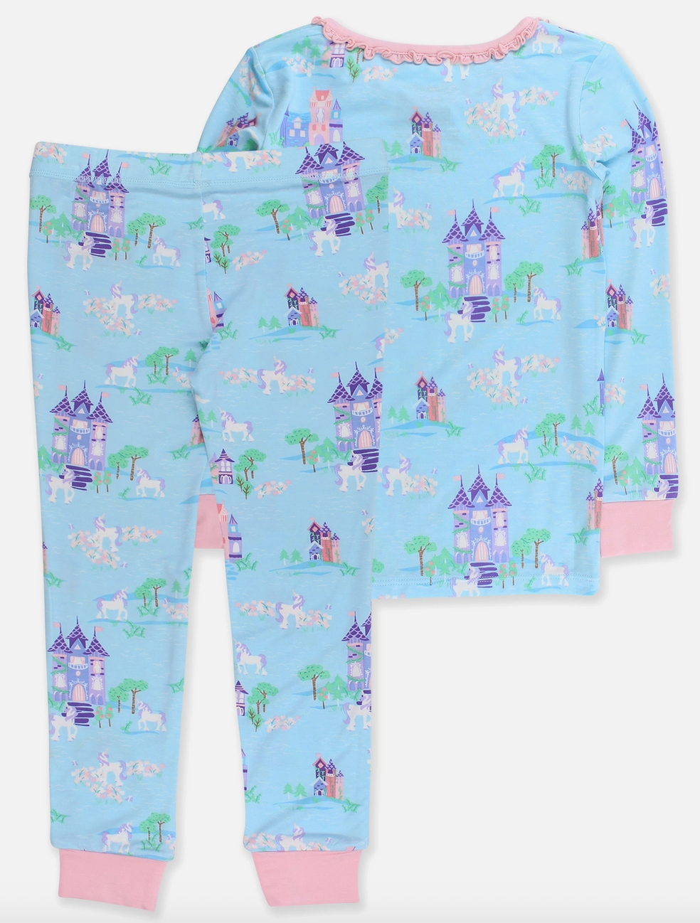 Little girls will wish they could live in this magical print, featuring enchanted castles and magical unicorns.
