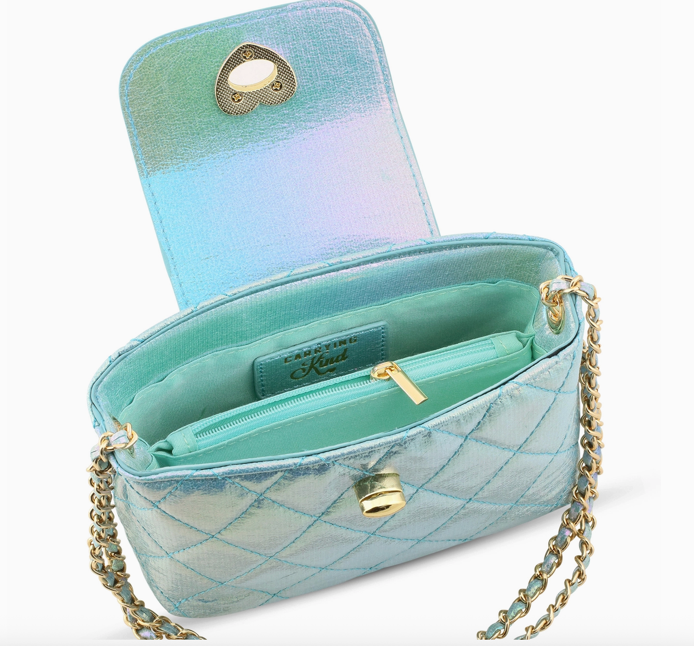 Sparkle, shine, and carry all her favorite things! The Paige Quilted Purse is made for kids who love a little metallic and a lot of fun. With its shimmery quilted fabric, this bag is as magical as her imagination. The comfy woven chain handle adds a stylish touch, while the matching interior lining and zippered pocket keep treasures safe. Whether it’s for a playdate, party, or just everyday adventures, the Paige is the perfect way to carry everything in style
