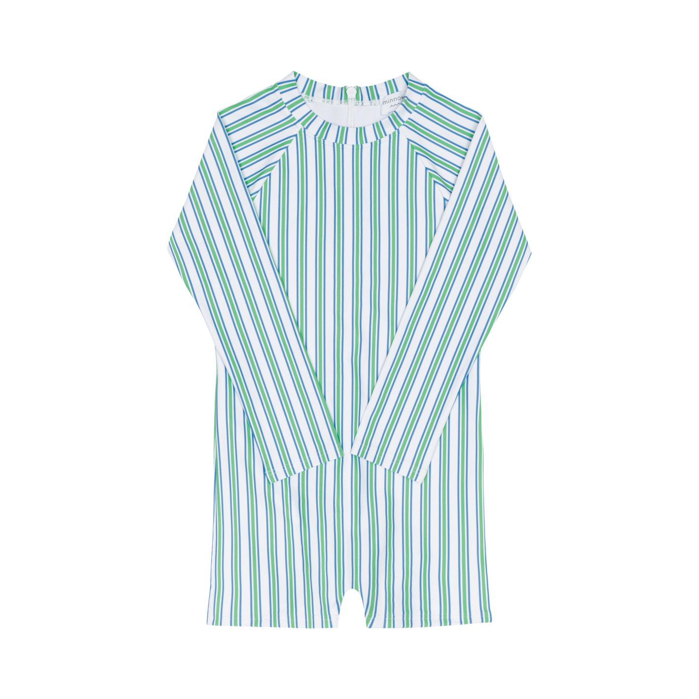 Minnow's long sleeve rashguard one piece has excellent sun protection. this style comes with a clean invisible zipper for easy access in and out of the suit. lined on the torso and legs for maximum coverage and ultimate comfort and unlined on the raglan arms for a lighter and cooler feel. designed for extra coverage to keep your littles sun-safe with our signature upf 50+ fabric.